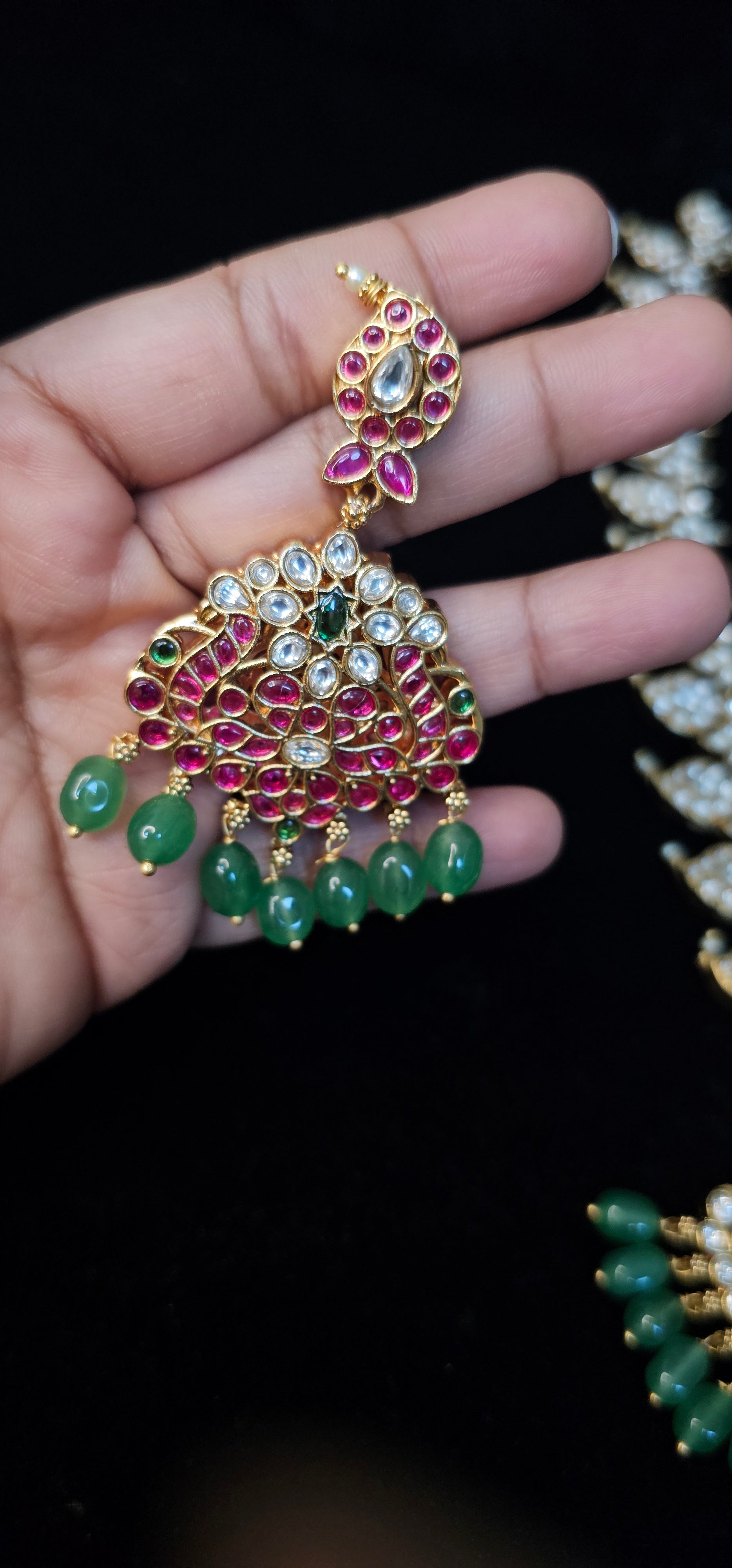 2 in 1 Mango Haram with 2 in chandbalish style earrings long haram traditional wear jewelry