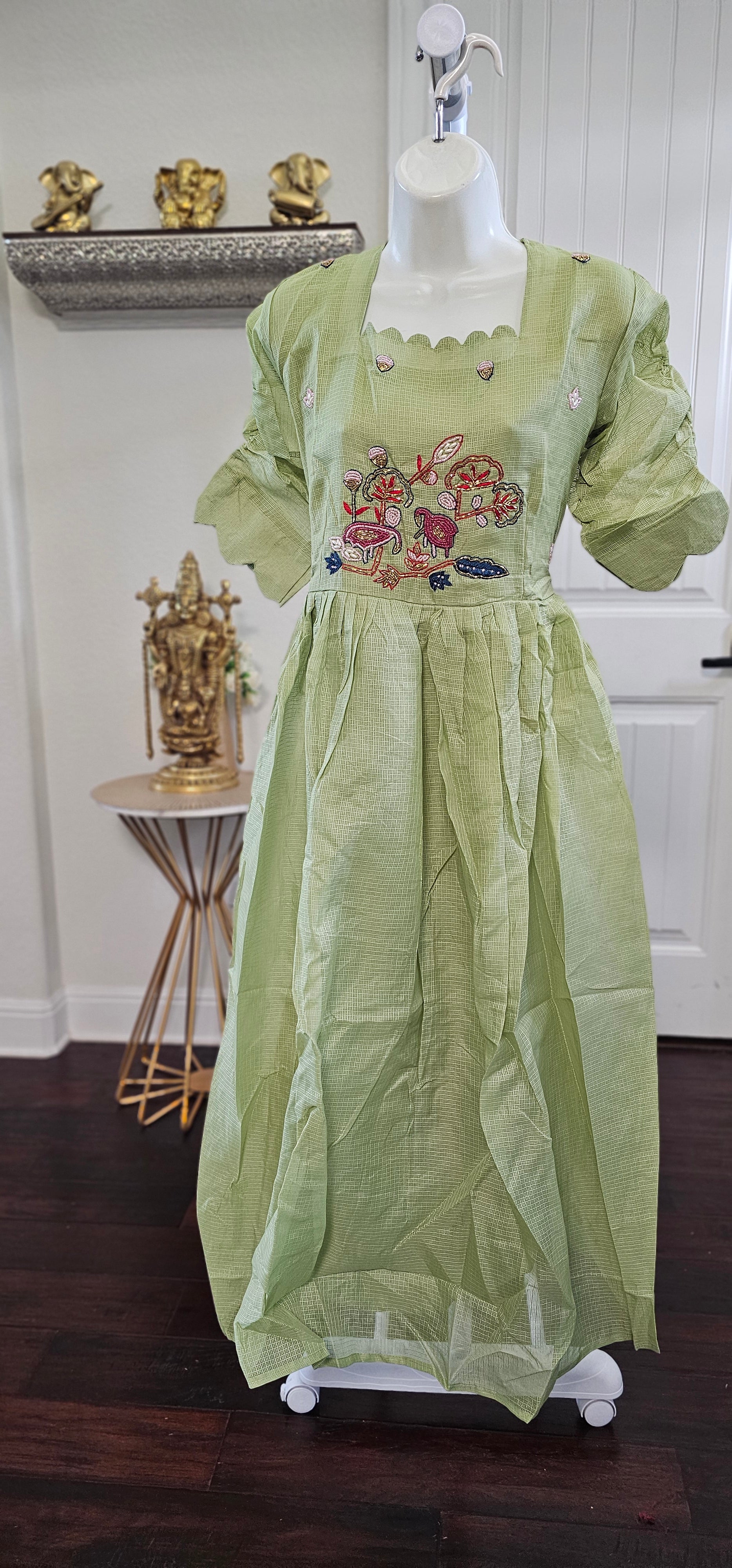 Kota maggam work frock light mehandhi green color