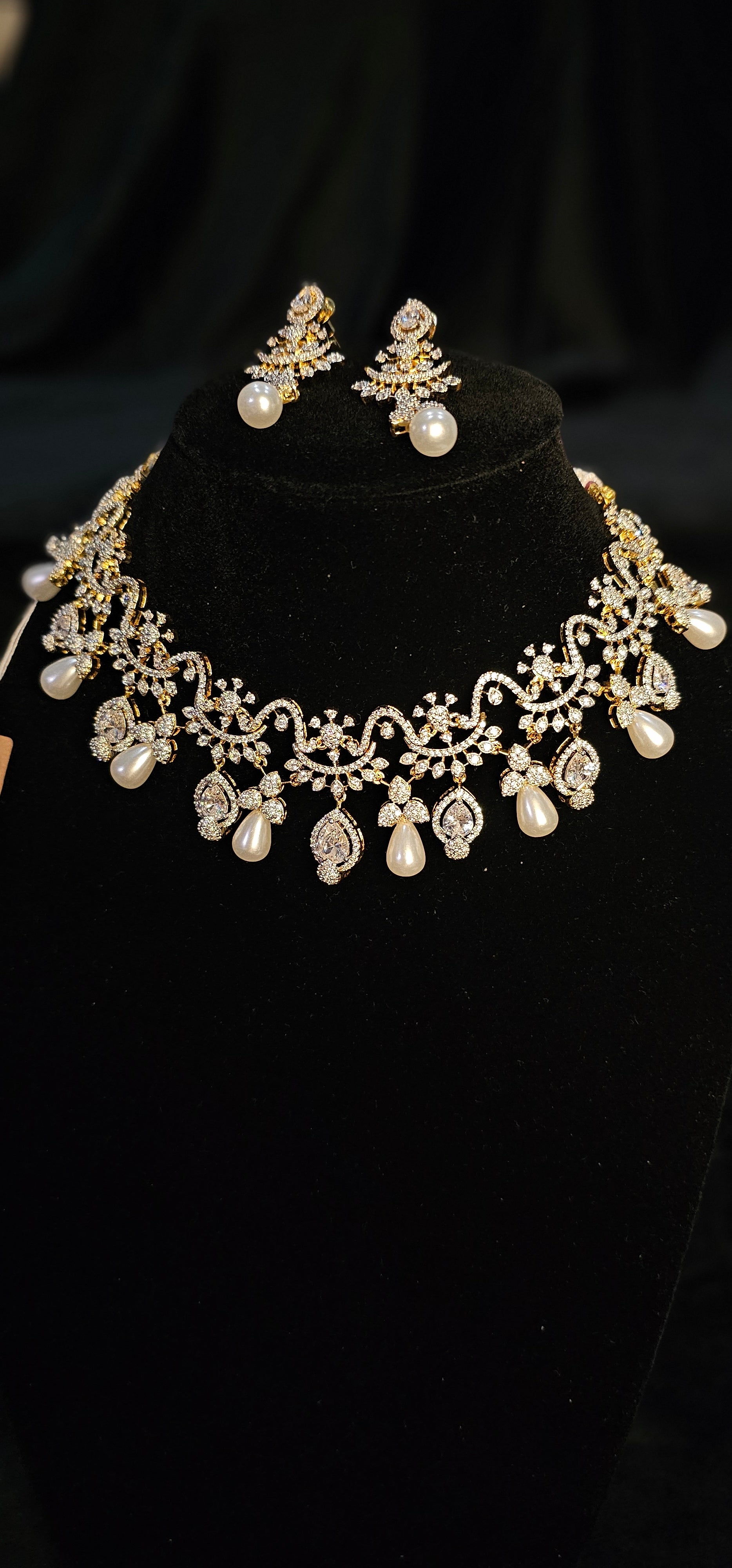 Details: Features a stunning "droplet" effect with alternating pear-cut crystals and polished ivory-tone pearls.